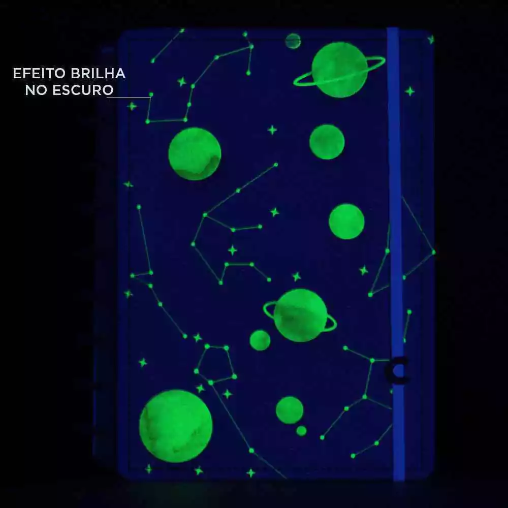 O Caderno mais FANTÁSTICO das Galáxias chegou! O Purple Galaxy by GoCase tem um acabamento que acende no escuro! Demais, né?