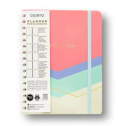 O Planner Permanente Wire-o Pastel Block Semanal Notas A5 Sport é um produto atemporal e customizável perfeito para quem quer começar o ano quando quiser. O planner possui: